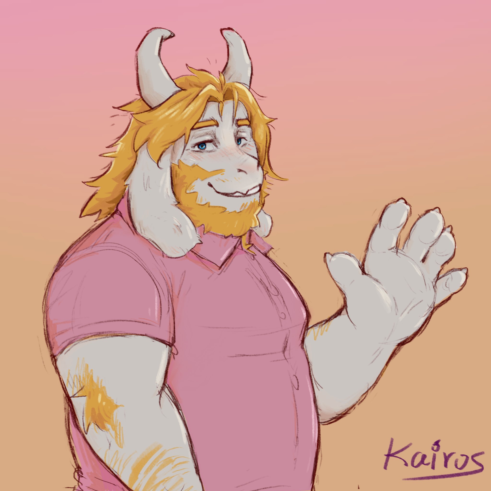 evilsable undertale_(series) asgore_dreemurr boss_monster_(undertale) bovid caprine goat mammal 2_horns 5_fingers anthro beard blonde_beard blonde_facial_hair blonde_hair blue_eyes claws facial_hair fingers fur hair horn humanoid_hands white_body white_fur 1:1 2026 hi_res signature rating:s