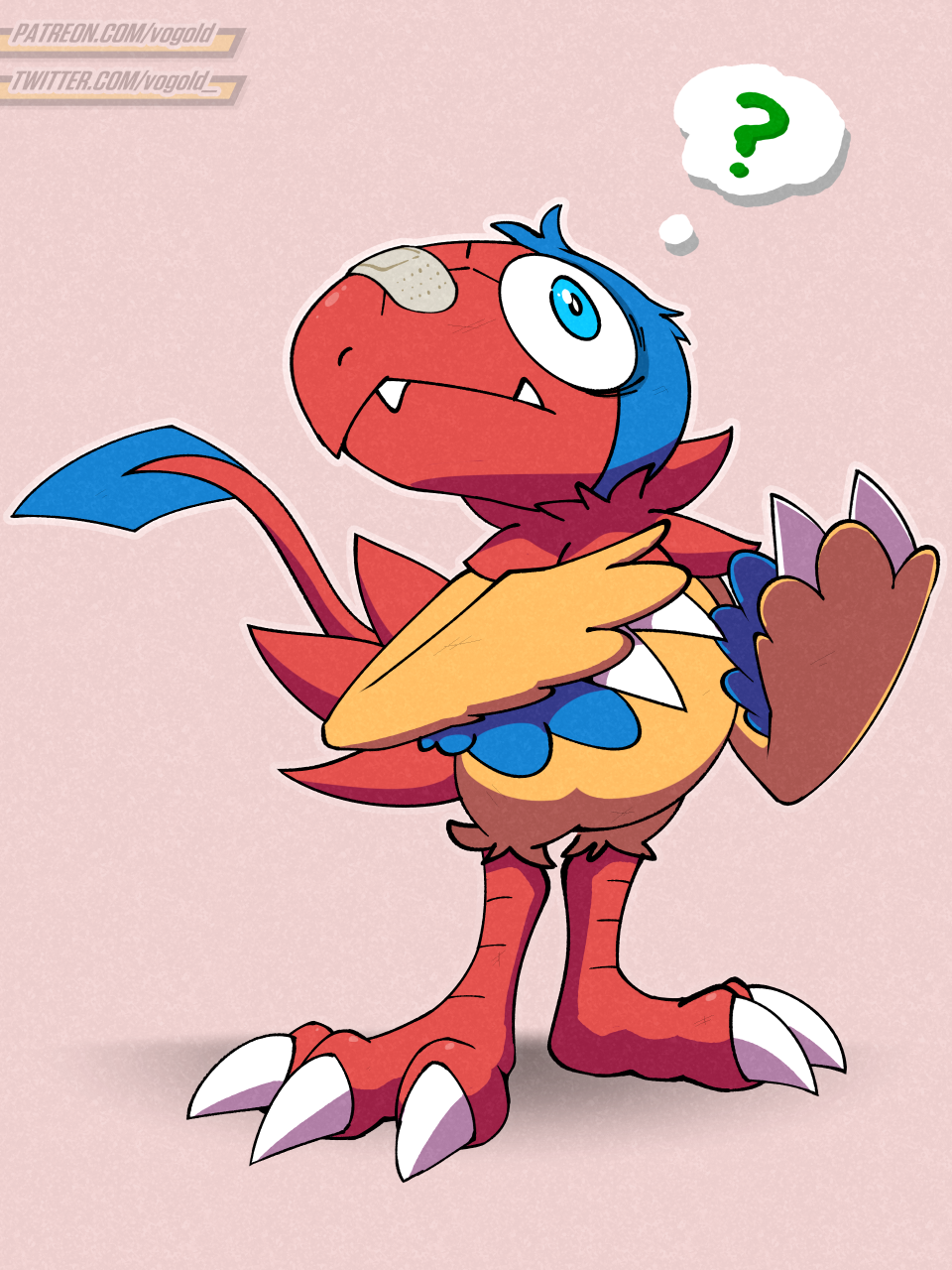 vogold nintendo pokemon archen avian bird fossil_pokemon generation_5_pokemon pokemon_(species) avian_feet beak claws fangs feathers feet finger_claws fur looking_at_viewer male simple_background solo standing tail teeth toe_claws wings digital_media_(artwork) hi_res signature rating:s