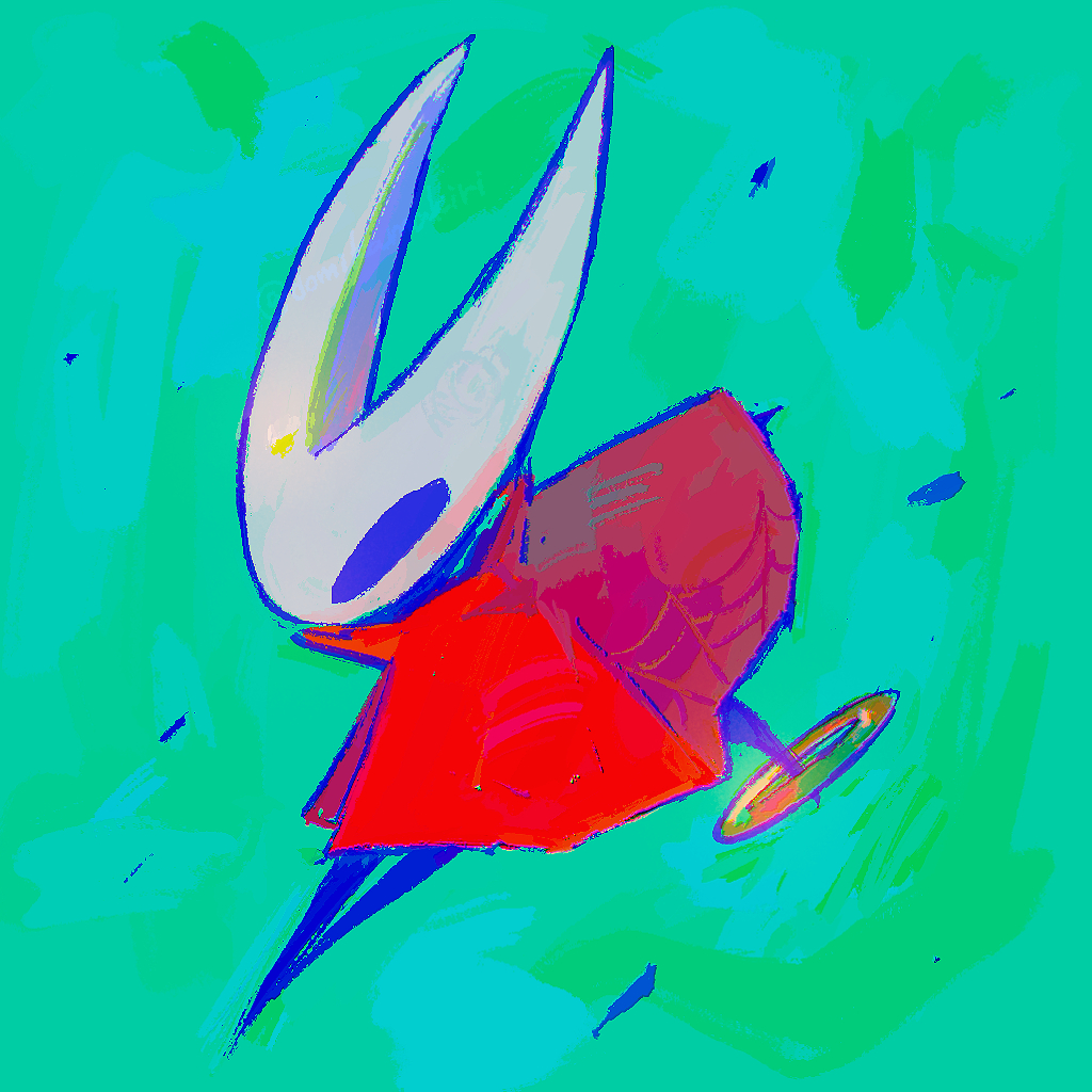 blipbugbug hollow_knight_(franchise) team_cherry hornet_(hollow_knight) arthropod 2_horns ambiguous_gender biped cloak clothed clothing empty_eyes horn red_cloak red_clothing solo rating:s female_(lore)