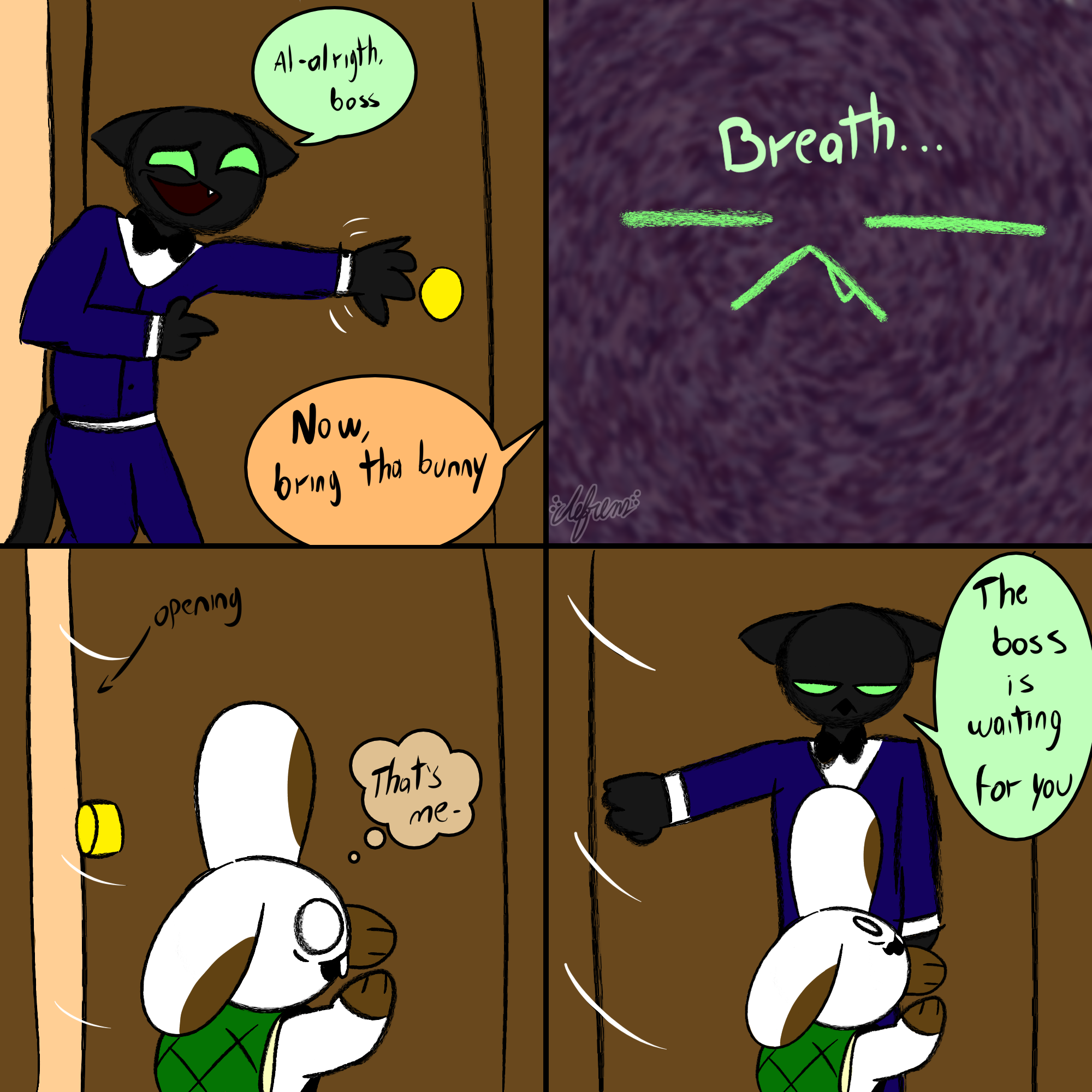 Here's the last page of part 1 of "Jackals and Batteries!". From here, my plan was to sync-up the story with Circus of Stones that was, at the time, being written by sarsis by using the next part to introduce Unadi's crossover back into the visual comic from the novelization. Sadly, it was during that arc that Alps passed away, but I hope you enjoy the next part in any case.