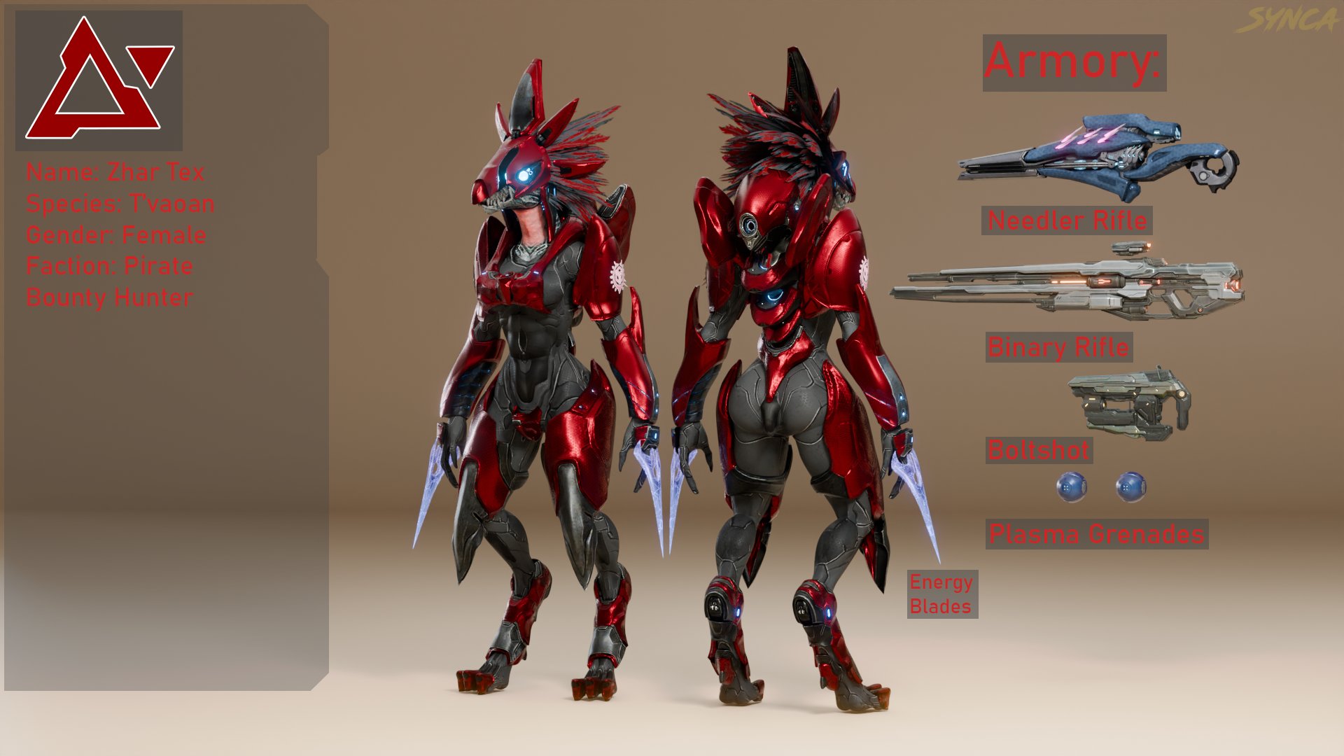 synca halo_(series) microsoft xbox_game_studios alien avian kig-yar scalie t'vaoan 3_fingers 3_toes anthro arm_blade armor avian_caruncle binary_rifle blue_eyes breasts clothing digitigrade dual_wielding dual_wielding_melee_weapons energy_blade energy_weapon explosives face_covered feather_hair feathered_crest feathers feet female fingers front_view full_armor furgonomics glowing glowing_eyes grenade grey_body grey_feathers head_crest headgear helmet highlights_(coloring) holding_object holding_weapon needle_rifle pseudo_hair rear_view red_body red_feathers red_highlights sharp_teeth short_tail simple_background skinsuit solo standing tail teeth text tight_clothing toes weapon 16:9 3d_(artwork) colored digital_media_(artwork) english_text hi_res widescreen rating:s
