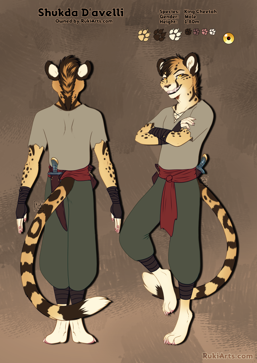 rukifox cheetah felid feline king_cheetah mammal anthro clothing dagger male melee_weapon striped_body stripes weapon yellow_body yellow_eyes hi_res rating:s