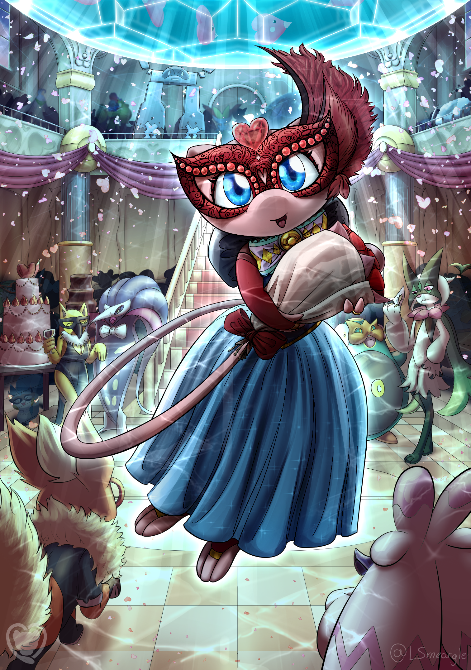 As a loyal and kind trainer, Mew invites you over to a secret Pokemon only masquerade party! Although, she also planned a little more for you on top of that, and you certainly deliver~