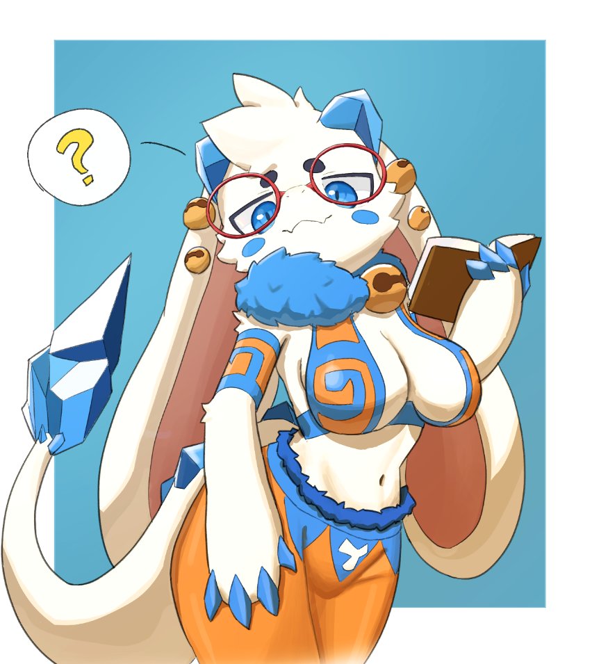 loliche valentine's_day animal_humanoid humanoid lagomorph lagomorph_humanoid leporid leporid_humanoid mammal mammal_humanoid rabbit rabbit_humanoid 4_fingers anthro blue_eyes blue_hair blush blush_lines candy clothing dessert fingers food fur hair heart_symbol herm holidays intersex rabbit_ears smile smiley_face solo sweater topwear white_body white_fur hi_res rating:s