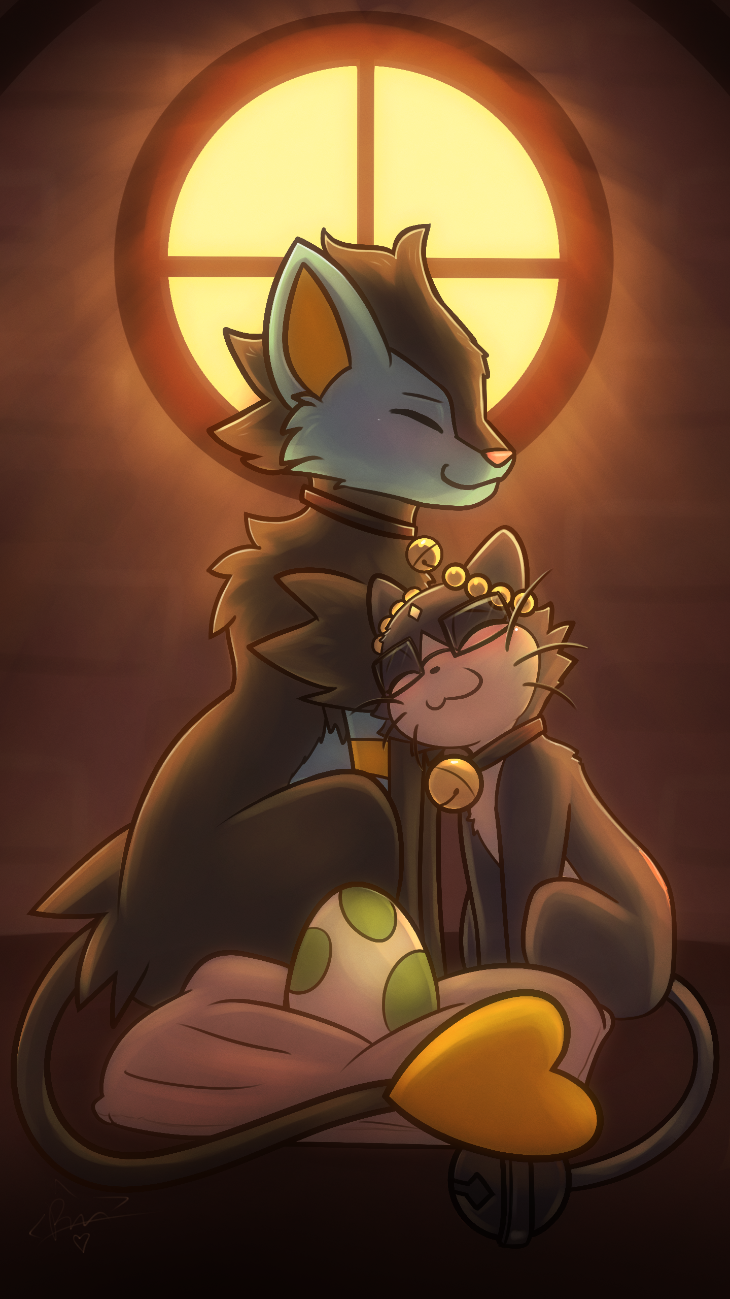 rymherdier beta_pokemon_games nintendo pokemon pokemon_gold_beta rayn_luxray rynring beta_pokemon_(species) felid generation_4_pokemon luxray mammal pokemon_(species) rinrin_(pokemon_gold_beta) ambiguous_gender bell bell_collar blush collar duo egg eyewear female feral fur glasses inside pillow pokemon_egg smile tail wearing_glasses window absurd_res digital_media_(artwork) hi_res rating:s