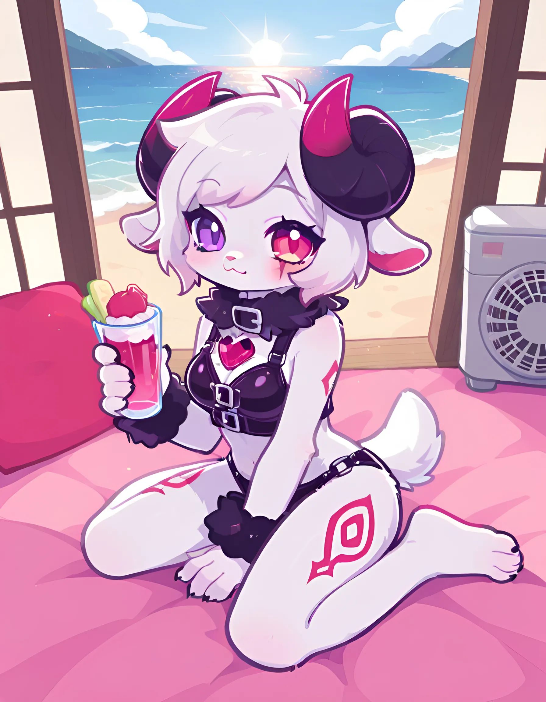 echotastrophe nintendo pokemon background_character canid generation_7_pokemon lycanroc mammal midnight_lycanroc pokemon_(species) anthro beach beach_towel beach_umbrella bikini boat breasts butt claws clothing countershading dialogue female fur gesture hand_gesture legs_together legs_up lying markings medium_breasts multicolored_body on_back parasol pawpads paws pink_sclera presenting presenting_hindquarters red_body red_eyes red_fur sea shark_fin short_tail solo swimwear tail thumbs_up towel tuft two-piece_swimsuit two_tone_body umbrella vehicle water watercraft white_body white_fur 2026 absurd_res hi_res shaded signature simple_shading rating:s