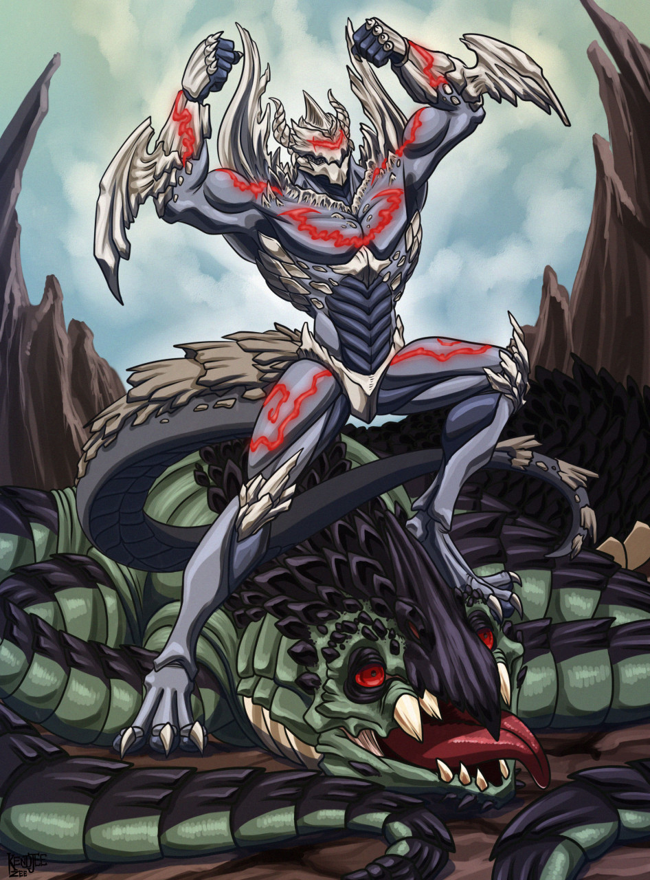 alphaleader thelastfirst mythology ultraman_(series) ultra_draconis celestial_being celestial_dragon dragon kaiju mythological_creature mythological_scalie robot scalie anthro arm_blade arm_spikes battle blade broad_shoulders claws clone corruption cracked_ground destruction duo electricity fight giant_monster horn jagged_beak lightning machine macro male muscular muscular_male purple_cloud red_eyes red_visor spikes spikes_(anatomy) struggling warrior hi_res rating:s