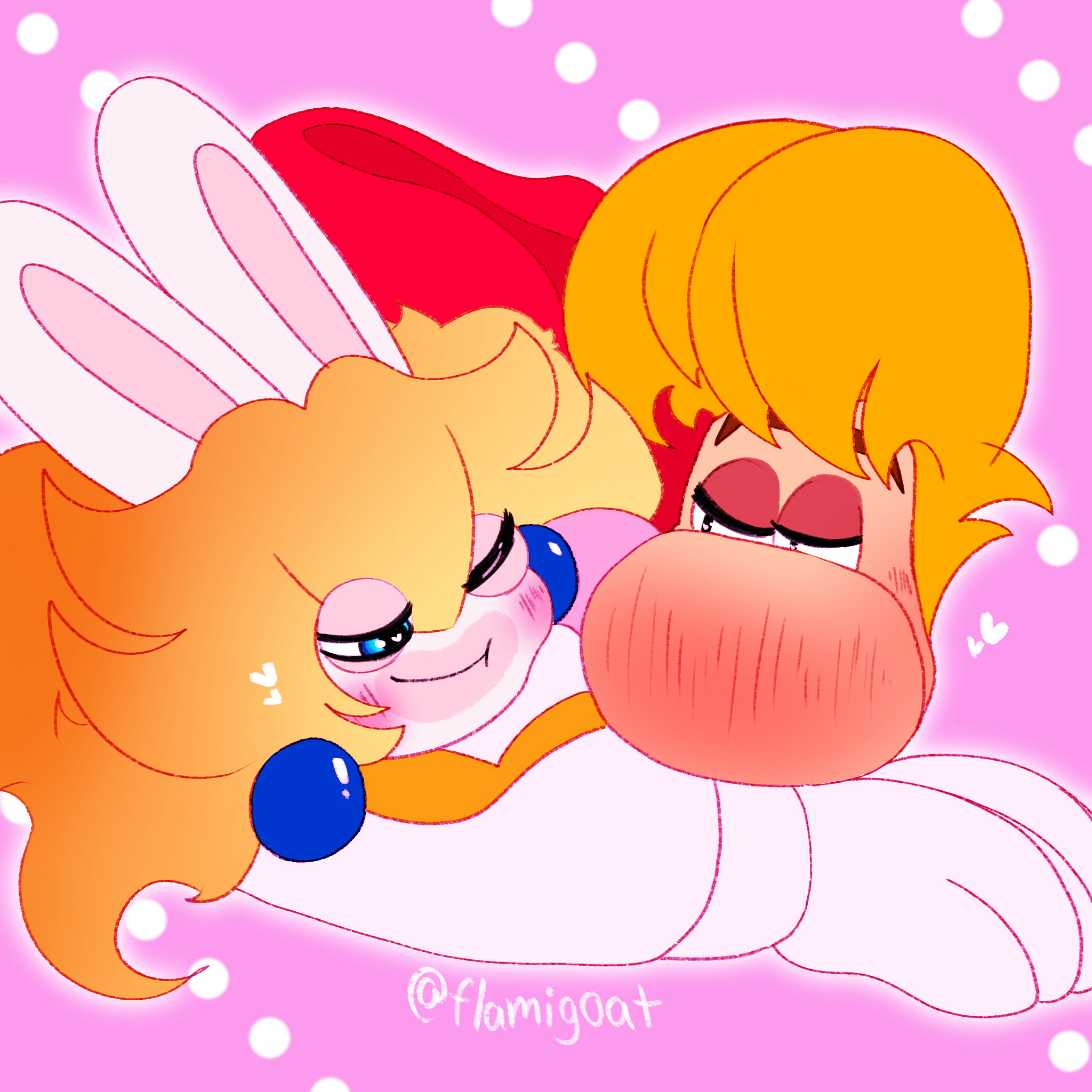 bell_koji domestic_cat felid feline felis mammal mouse murid murine rodent ambiguous/ambiguous ambiguous_gender anthro bed bed_sheet bedding bedding_background black_body black_eyebrows black_fur black_hair black_inner_ear black_inner_ear_fluff black_nose black_text blush circle_eyebrows closed_smile eyebrows feet fur furniture hair hands_in_lap inner_ear_fluff logo lying mouth_closed on_bed on_side pillow pink_feet pink_hands pink_inner_ear pink_nose pink_tail simple_background smile spooning tail tan_background text tuft white_body white_eyebrows white_fur white_hair 2024 artist_logo artist_name hi_res rating:s