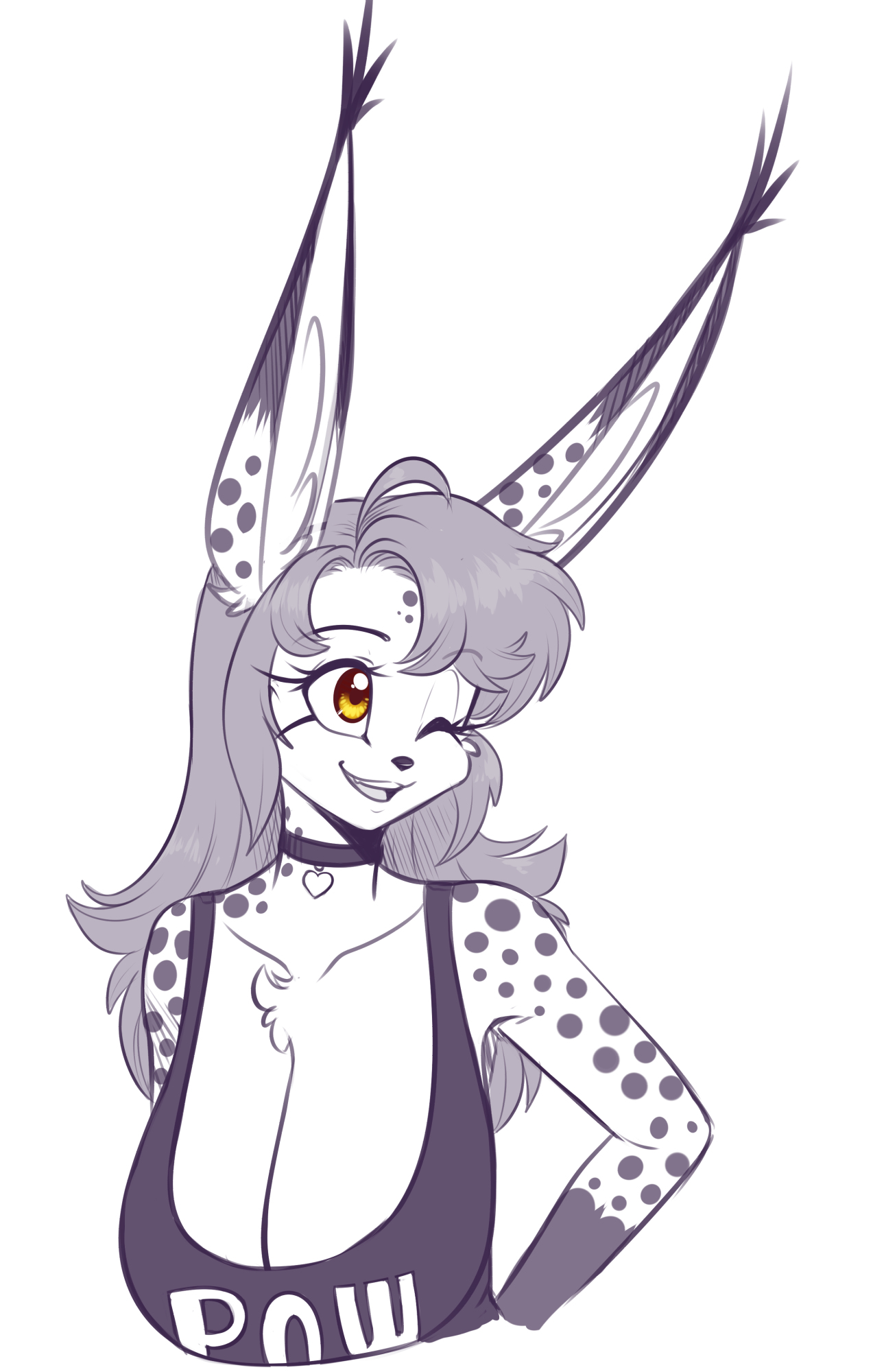 scorpdk mara_(scorpdk) felid feline lynx mammal anthro big_breasts big_ears breasts chest_tuft choker cleavage clothed clothing collarbone eyebrows eyelashes female hair heart_choker huge_breasts jewelry necklace open_mouth open_smile smile solo tuft yellow_eyes 2026 hi_res spot_color rating:s