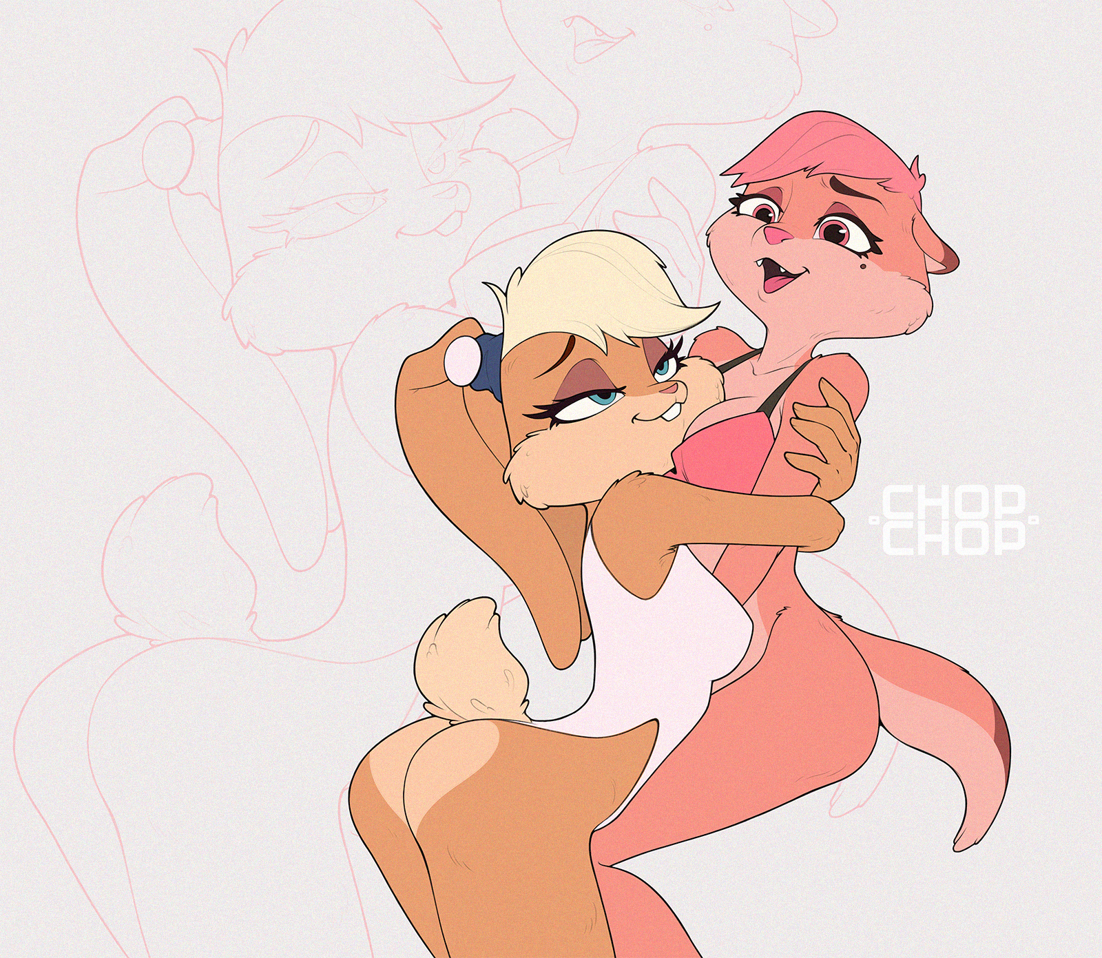 chopchop looney_tunes warner_brothers lola_bunny anthro clothing duo female paper_sweet swimwear digital_drawing_(artwork) digital_media_(artwork) hi_res rating:s