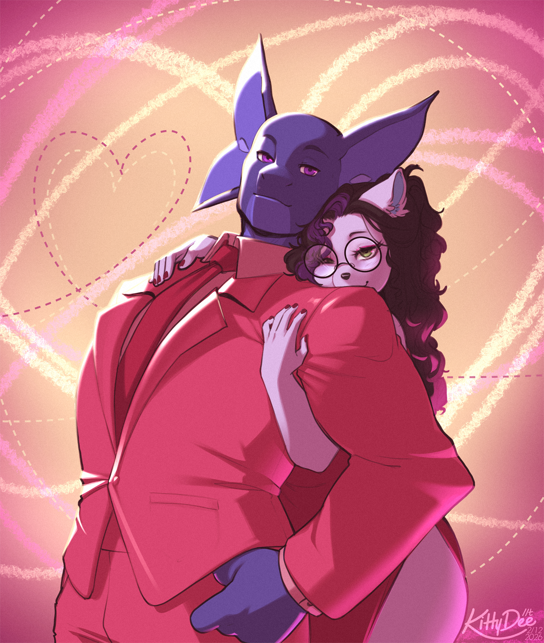 kittydee felid feline mammal scalie anthro biped bottomwear clothed clothed_anthro clothed_female clothed_male clothing duo eyewear female fingernails fingers front_view fully_clothed fully_clothed_anthro fully_clothed_male fur glasses hair looking_at_viewer male nails simple_background smile standing topwear 2026 digital_drawing_(artwork) digital_media_(artwork) hi_res rating:s