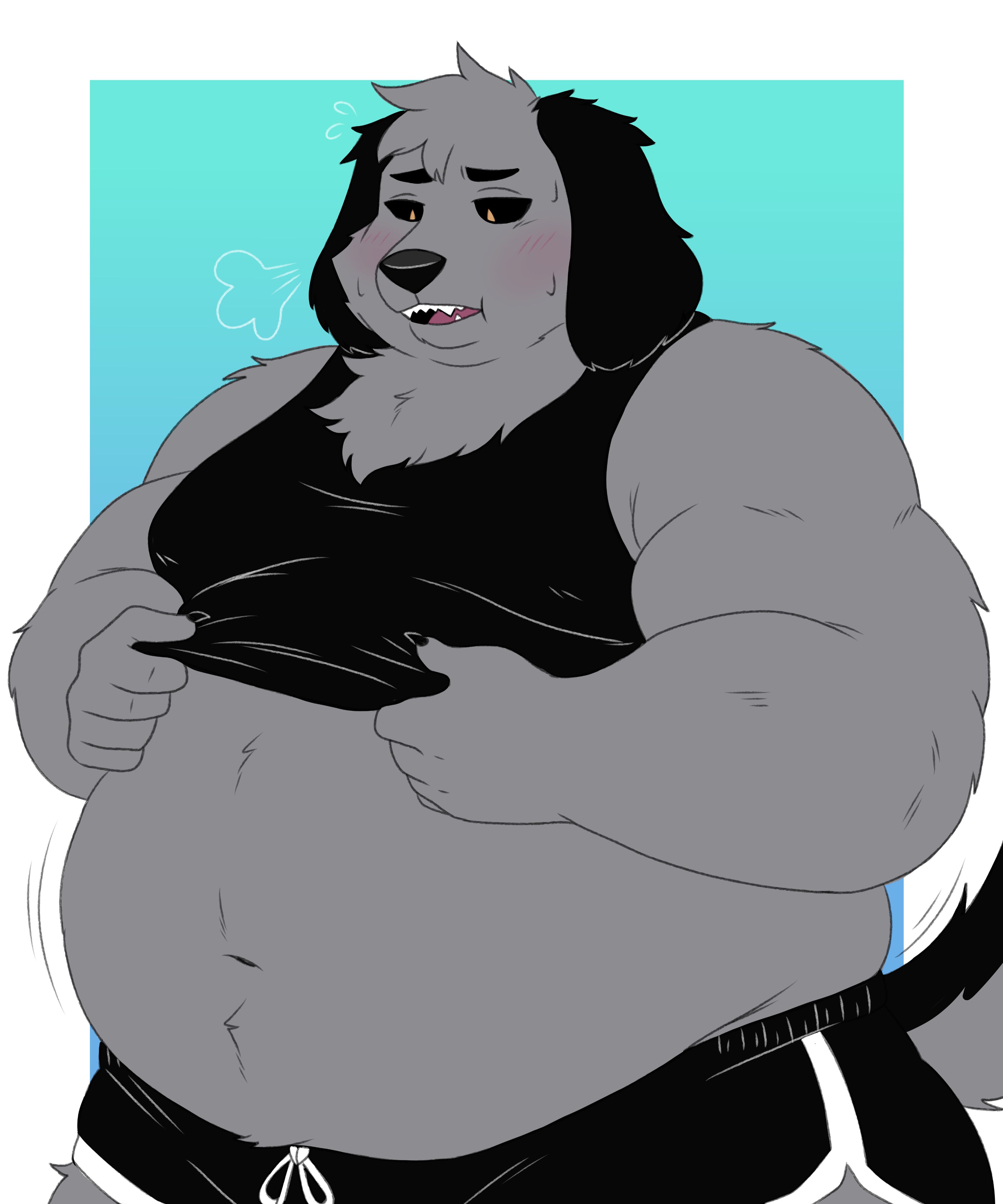 k-9 badger mammal mustelid musteline anthro belly blush bottomwear clothed clothing eyes_closed humanoid_hands male navel nipples open_clothing open_shirt open_topwear overweight overweight_male pants shirt solo standing topwear 2026 hi_res rating:s