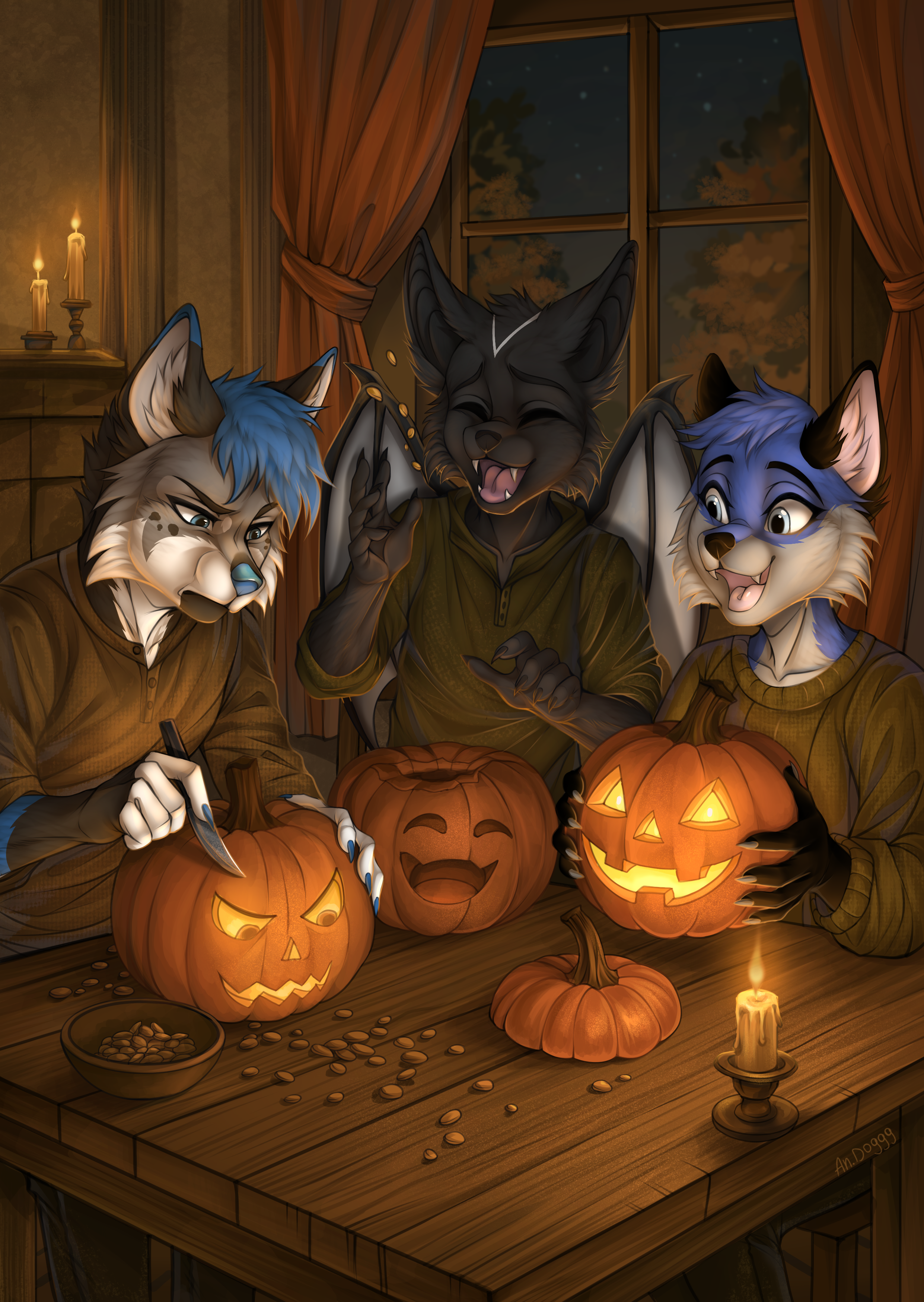 angry_doggg halloween andromorph anthro female food fruit group holidays intersex male male/female male/male plant pumpkin trio absurd_res hi_res rating:s